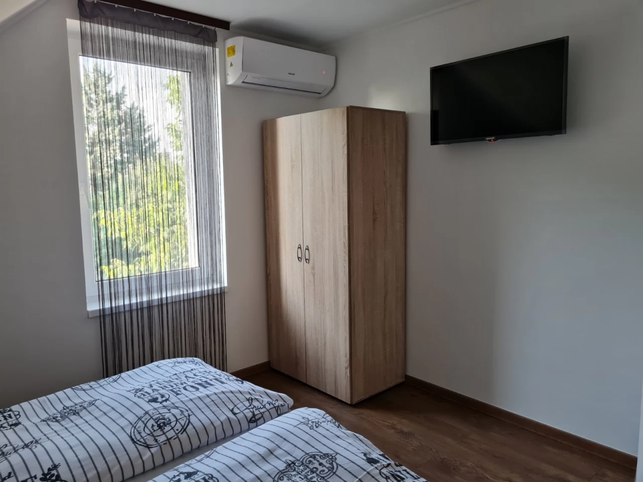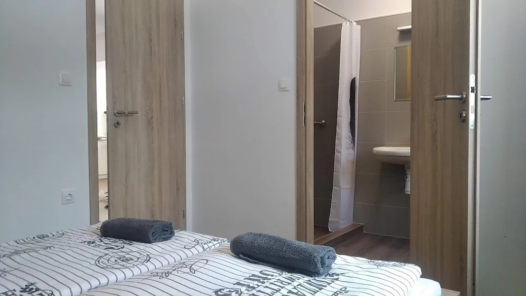 1 db három légterű (2 szoba + nappali) apartman külön konyhával és saját fürdőszobával (2 db)