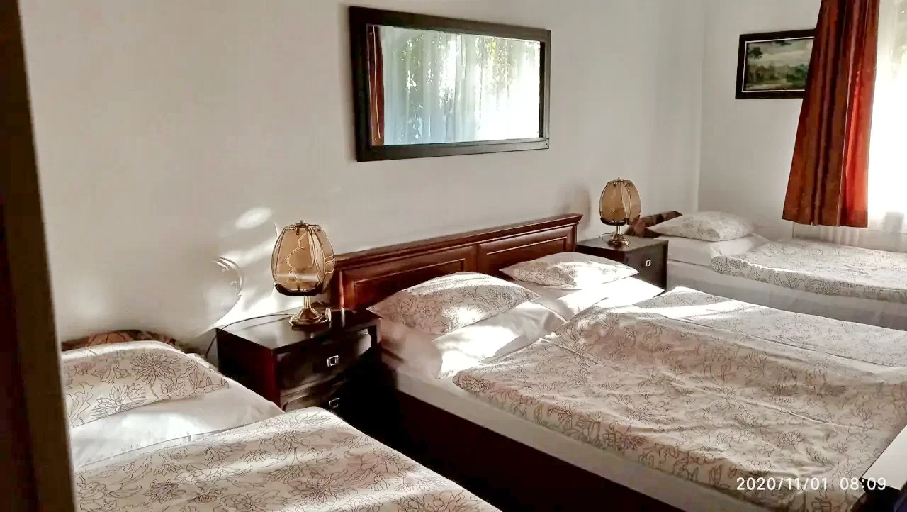 Szállás Struktúra: Az apartman földszinti és emeleti részből áll. A földszinten egy 4 fős apartman található, 1 hálótérrel és külön konyhával, míg az emeleten egy 6 fős lakosztály 3 hálótérrel és 2 fürdőszobával várja a vendégeket. Az emeleti lakosztály erkélyes, és pótágyazható, így akár 7 fő is kényelmesen elfér benne.