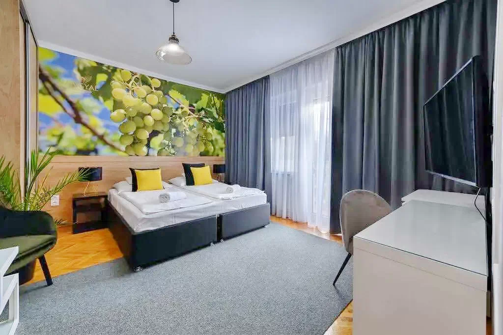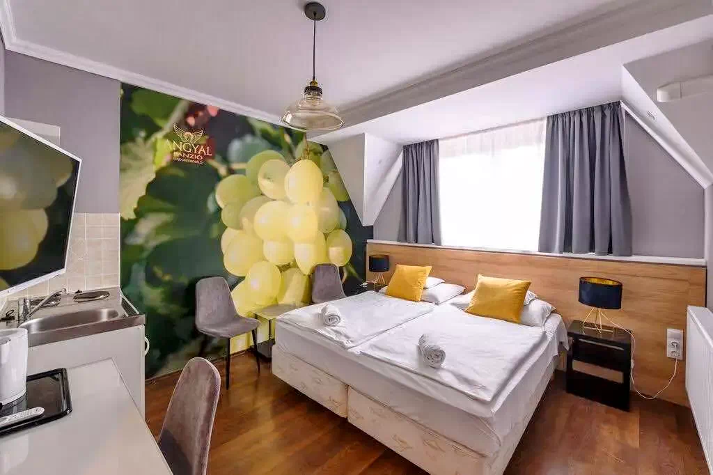 A vendégház Hajdúszoboszló szívében található közvetlenül a helyi termálfürdő előtt. A szálláson közös konyha és ingyenes helyszíni parkoló áll rendelkezésre. A vendégház szobái TV-vel, hűtőszekrénnyel, valamint saját, káddal felszerelt fürdőszobával rendelkeznek. A szálláshely apartmanokat kínál külön ülősarokkal és konyhasarokkal. A vendégház borospincével rendelkezik, amely a tokaji régió boraival van tele. A vendégek használhatják a közös konyhát, amely tűzhellyel és evőeszközökkel felszerelt.