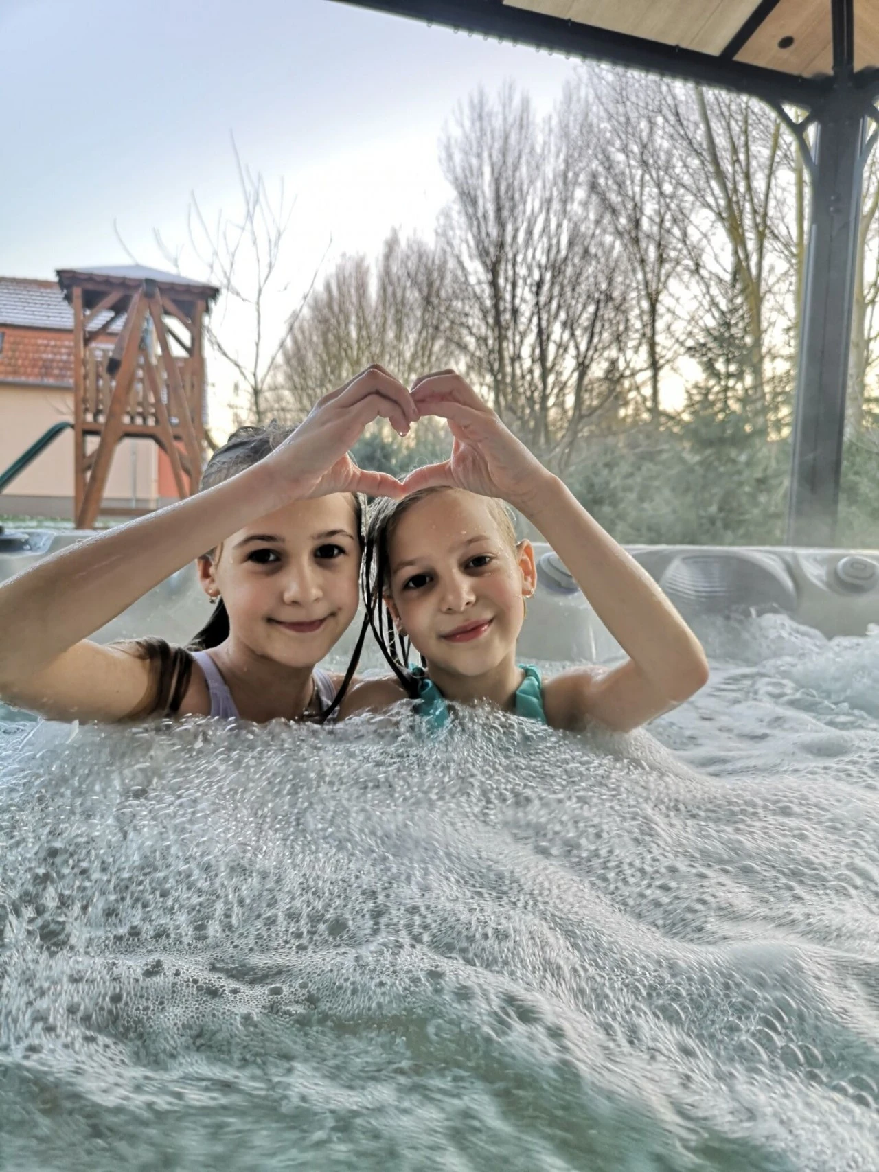 Várjuk kedves vendégeinket nagy fedett terasszal,gyerekek számára játszótérrel,trambulinnal és szabadtéri medencével.